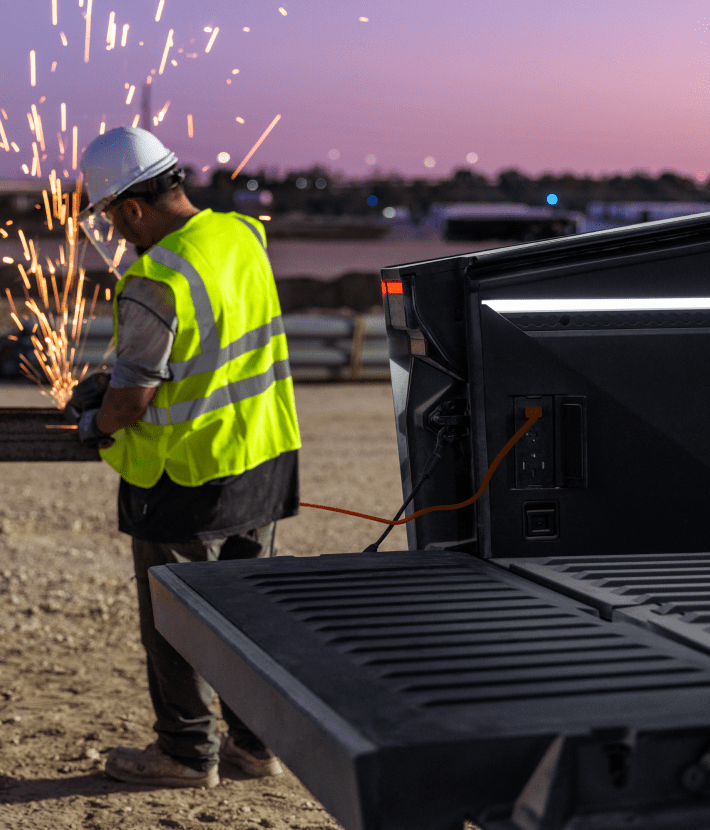 Operate your tools or charge any EV with integrated 120V and 240V bed and cabin outlets. During a grid outage, provide up to 11.5 kW of